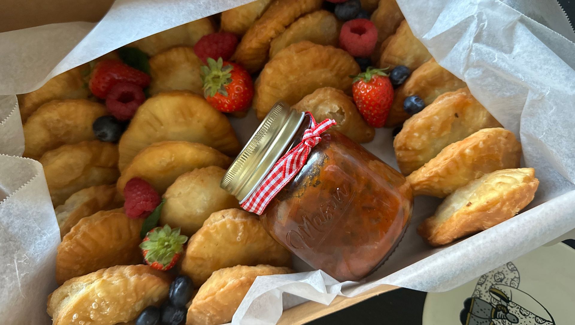 Salut ! C’était juste pour te dire que les pastels étaient très bons. Nous avons fait un apéro à la maison et il n’en restait plus après 30 minutes. La sauce tomate était très bien épicée. Le Bissap était parfait, il est souvent trop sucré ( à mon goût) mais cette fois-ci le ratio était parfait. Présentation parfaite avec l’assiette et l’utilisation de matériaux durables ( environmentally friendly).